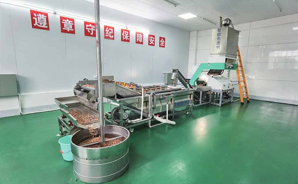 循着香味走进果乡食品集团斥资700万元,严格按照HACCP食品安全管理体系的要求,高标准、高质量打造的现代化厂房,入目所见,是先进的10万级无尘车间,全自动机械化的生产设备,规范的生产工序,还有严格的食品安全检测流程,一颗小小的花生米,在此蜕变为风味极佳的花生油。