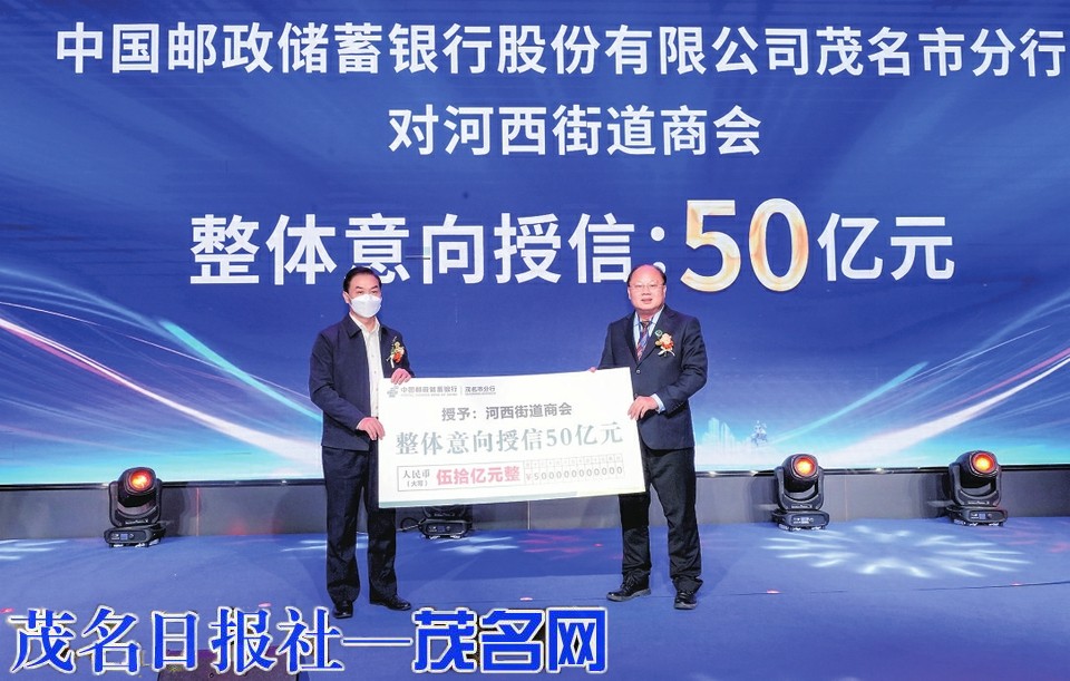 中国邮政储蓄银行股份有限公司茂名市分行向河西街道商会整体意向授信50亿元。