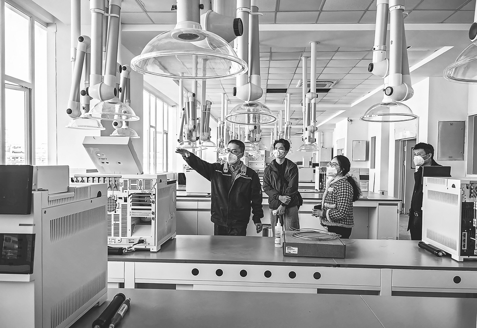 化验室的设备仪器已经进入安装调试。图为技术人员在为记者介绍化验室的调试情况。 本报记者丘立贺摄