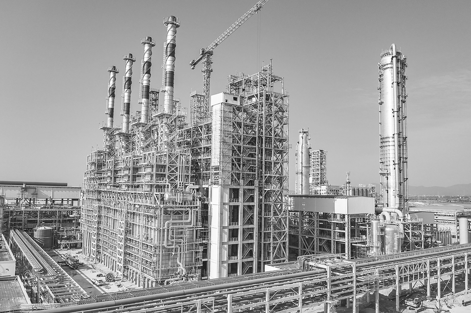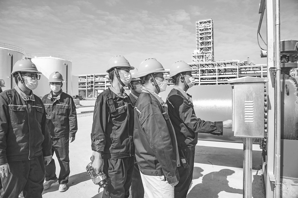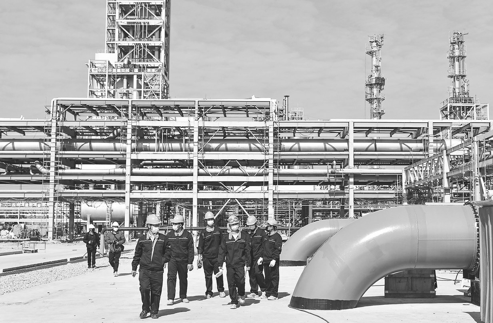 一座现代化绿色化工和氢能产业园正在崛起。如图60万吨年丙烷脱氢装置。 本报记者丘立贺摄