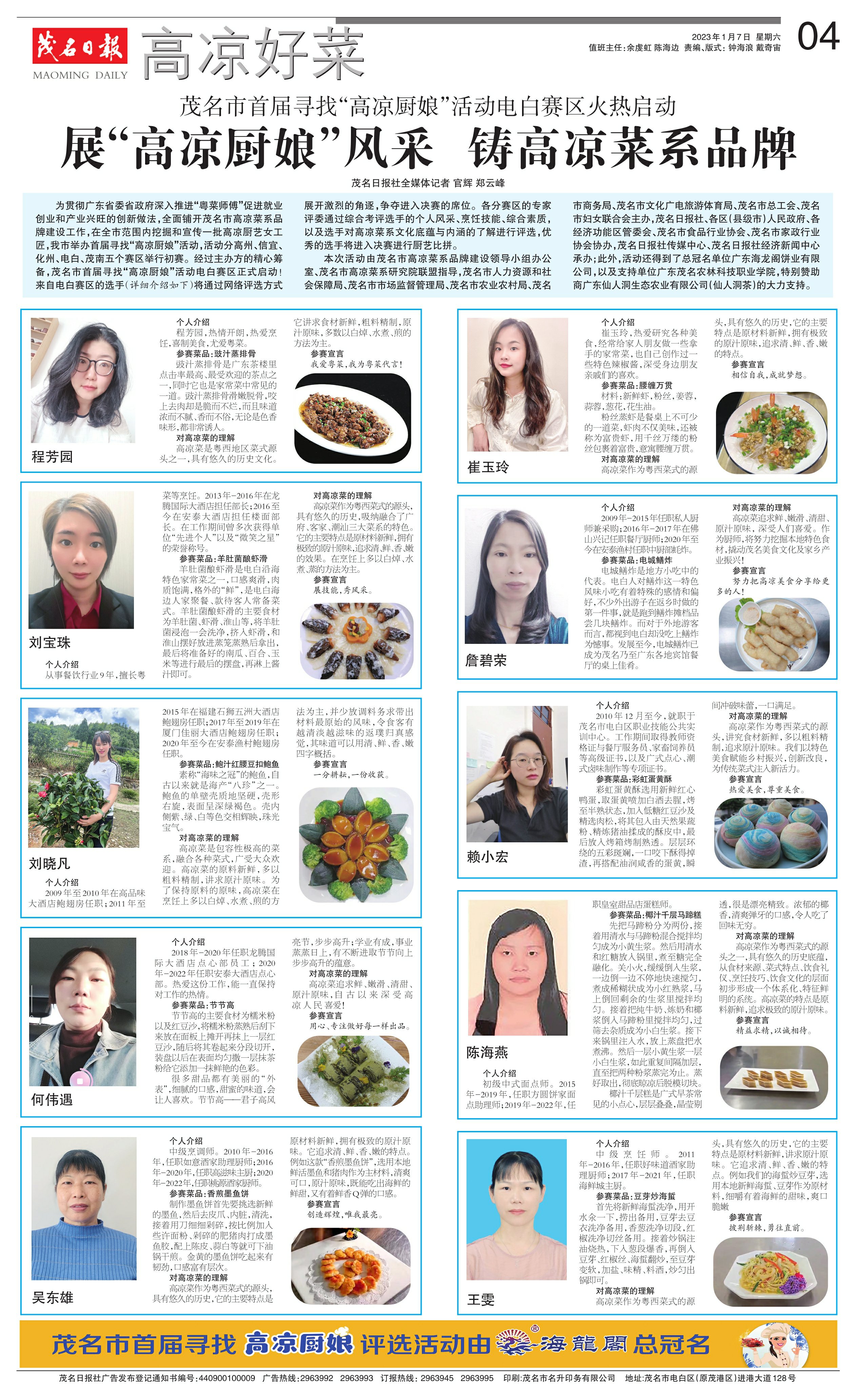 从事餐饮行业9年,擅长粤菜等烹饪。2013年-2016年在龙腾国际大酒店担任部长;2016至今在安泰大酒店担任楼面部长。在工作期间曾多次获得单位“先进个人”以及“微笑之星”的荣誉称号。