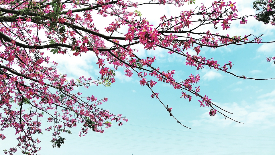 蓝天映衬下,异木棉显得温馨美丽。