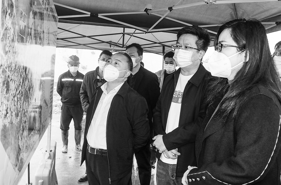 廖述毅一行调研雄鹰岩场土地整治和综合利用项目进展情况。 通讯员郑伟业摄