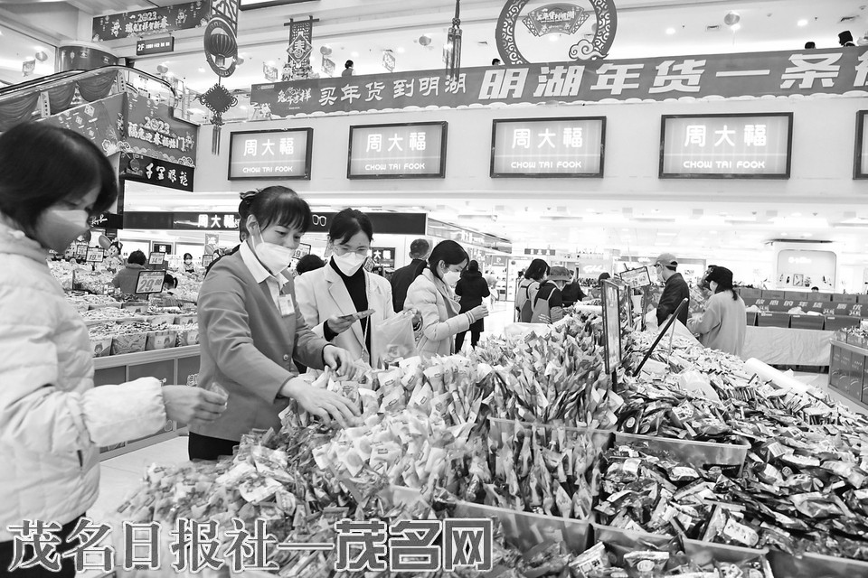 本报讯 2023年春节脚步临近,市民少不了备些年货过年。昨日下午,记者从明湖等商场了解到,市区多个商场应节商品供应充足,质量稳定,价格与去年基本持平,部分干果等价格略降。传统包装的年货供应畅销。购物高峰前几天已出现,而且势头持续旺盛。