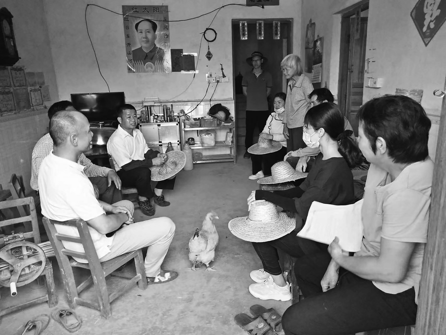 他还利用周末休息时间,向村民宣讲乡村振兴知识,发动群众参与环境保护和乡村建设(见图)。在他的带领下,村里群众参与积极性高,集资7000多元,建成一个垃圾池,是坡头村自建垃圾池的首创,人居环境得到大大提升。