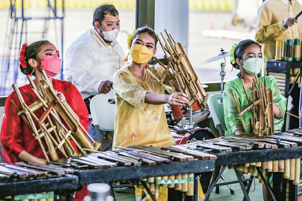 1月24日,在菲律宾马尼拉国际机场,当地艺人进行特色民乐表演。