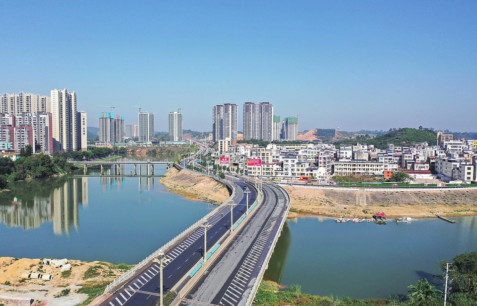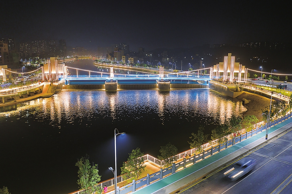 信宜市一河两岸靓丽夜景。本报记者丘立贺摄