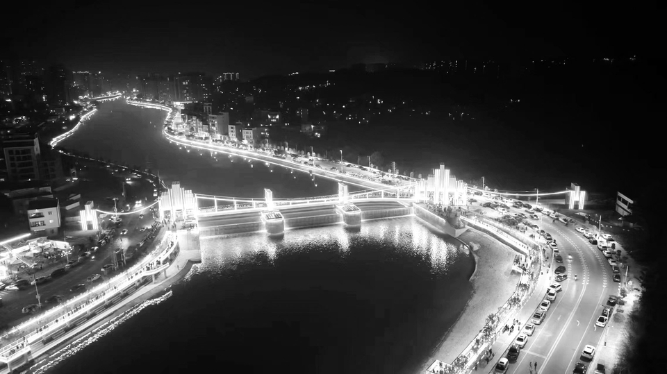 本报讯日前,在信宜包茂高速六运出入口附近的银湖水闸桥亮灯,为信宜城区增添一抹浓厚的喜庆氛围。夜晚下,银湖水闸桥显得格外迷人,在灯光的装饰下,东西两端主要呈现出流光的金黄色,中间桥梁主要呈现出流光的蓝色,堤坝人影走动,水中倒影婆娑,夜色流光溢彩,市民在桥上可以欣赏“一河两岸”的亮丽风光。连日来,不少市民纷纷前往拍照,在社交平台掀起一场“打卡”热潮。