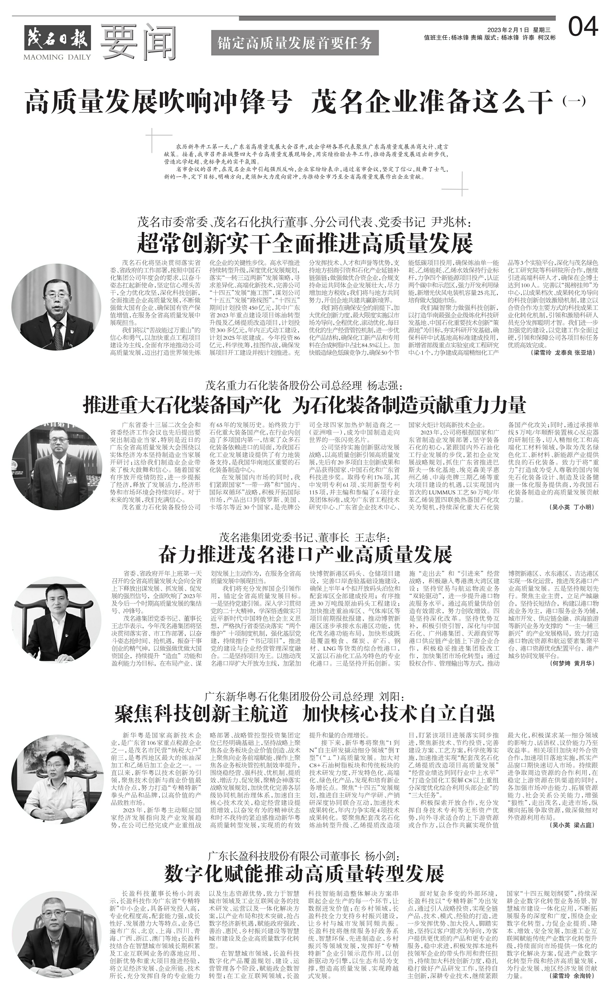 高质量发展吹响冲锋号 茂名企业准备这么干(一)