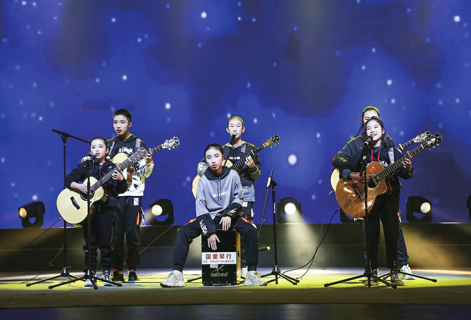 本报讯 随着指弹吉他《枫叶城》的前奏缓缓响起,茂名市吉他协会演员们稚嫩的脸庞写满了专注与坚定,干净利落的指弹附和震音打板的节奏,配合着吉他弹唱歌曲《夜空中最亮的星》,时而清婉悠扬时而奋进激扬的乐曲征服了现场观众……这就是茂名市吉他协会在2023“好心茂名”少儿春晚中带来的《枫叶城、夜空中最亮的星》串烧节目。