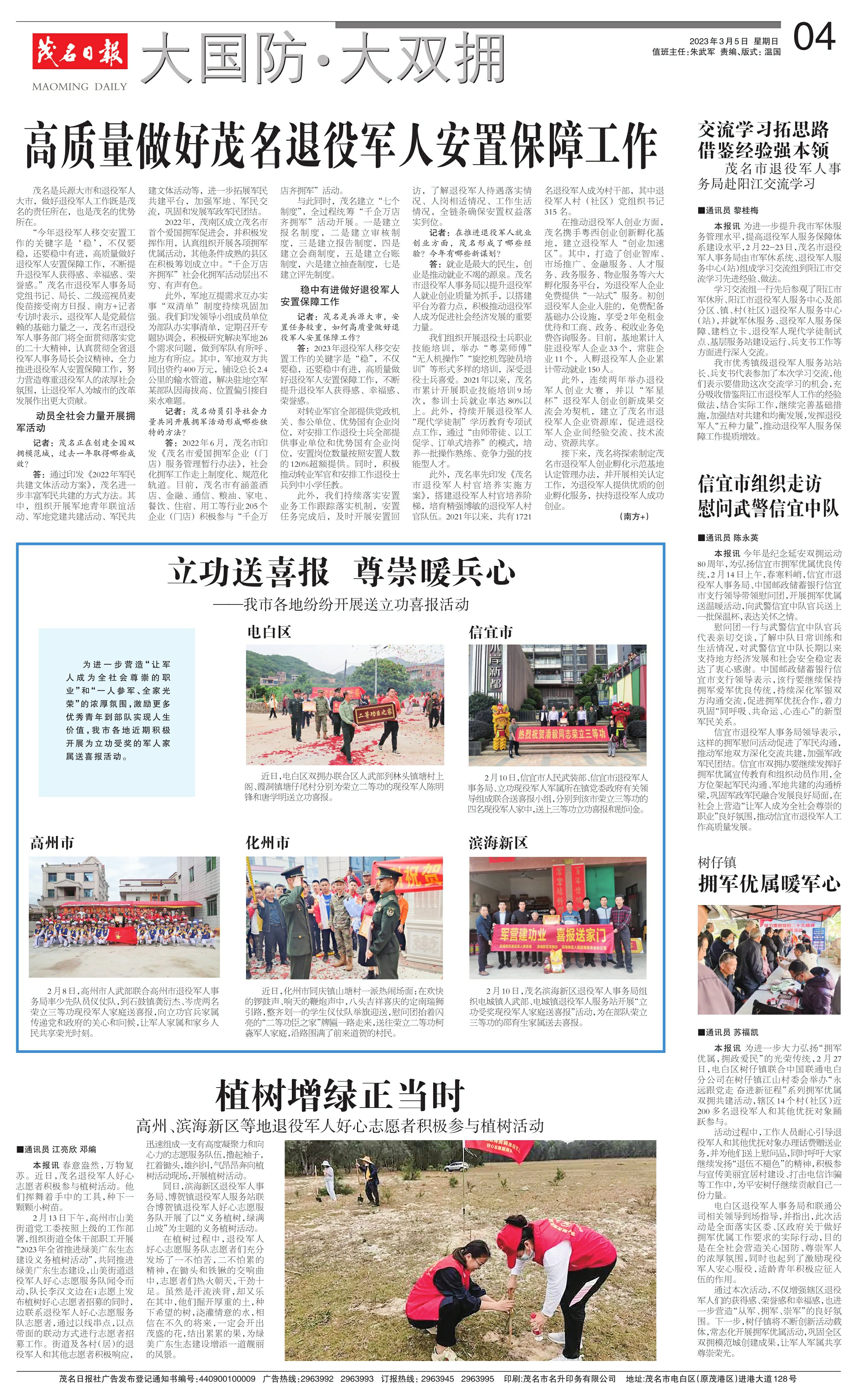 高质量做好茂名退役军人安置保障工作