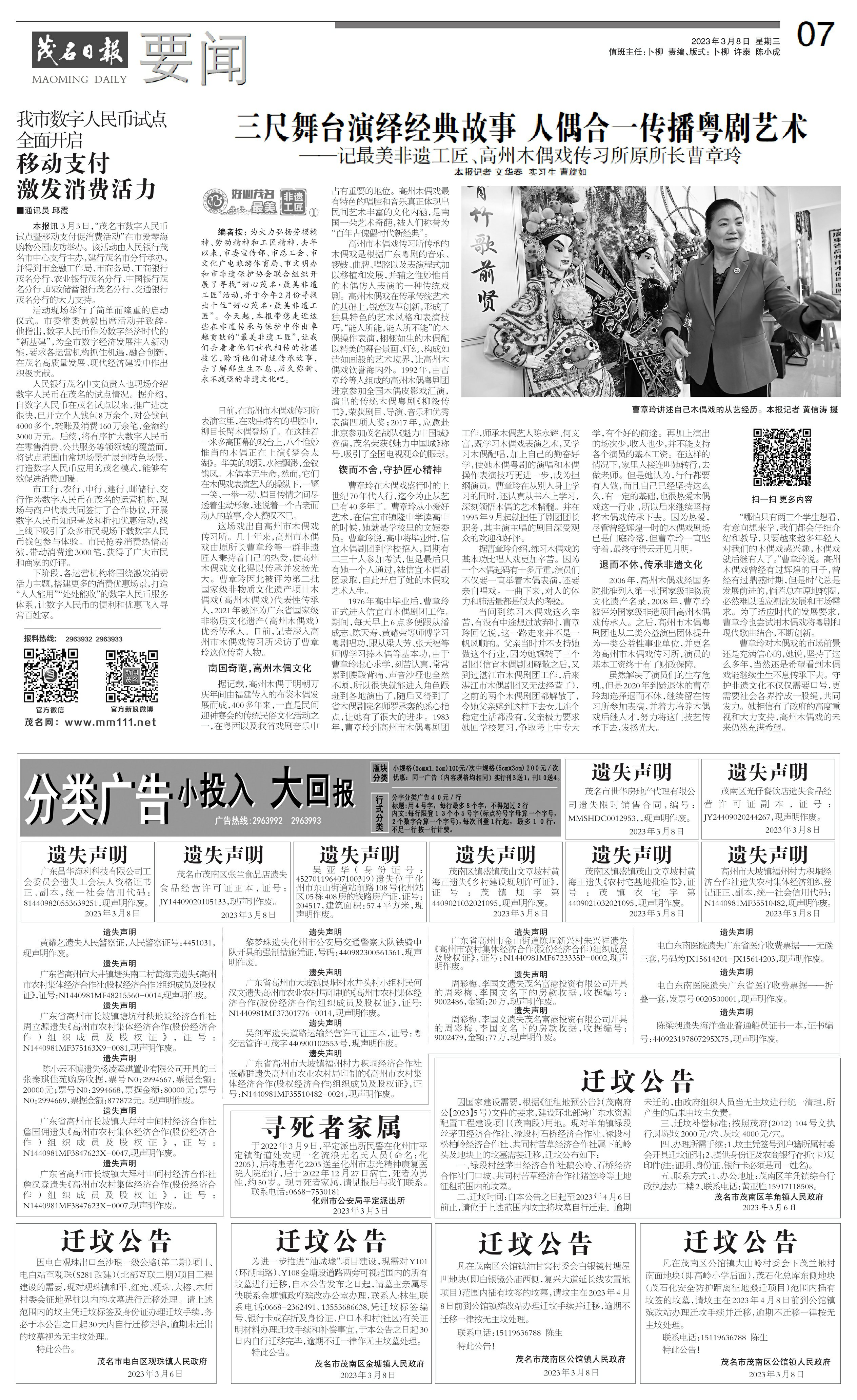 三尺舞台演绎经典故事 人偶合一传播粤剧艺术