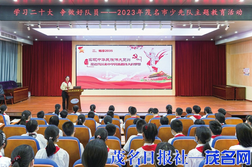 本报讯近日,市为民路小学和观珠镇木师小学联合开展了“学习二十大精神,争做好队员——我们的2035”主题队课活动,帮助少先队员加深对2035年基本实现社会主义现代化目标的理解,引导少先队员畅想美好未来(如右图周泽佳摄)。