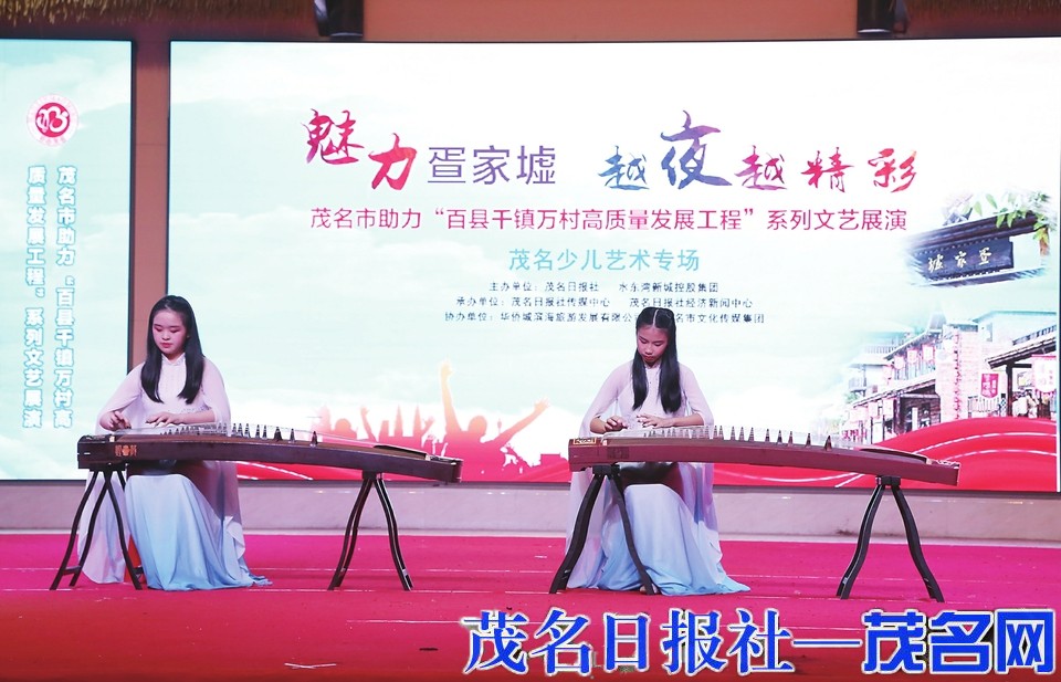 本报讯昨晚,以“魅力疍家墟越夜越精彩”为主题的茂名市助力“百县千镇万村高质量发展工程”系列文艺展演茂名少儿艺术专场在晏镜·疍家墟年例广场精彩上演。本次文艺展演共有15个节目,通过歌舞表演、乐器演奏、相声、朗诵等多种节目形式,为观众带来一场“文化大餐”(如右图李颜东摄)。