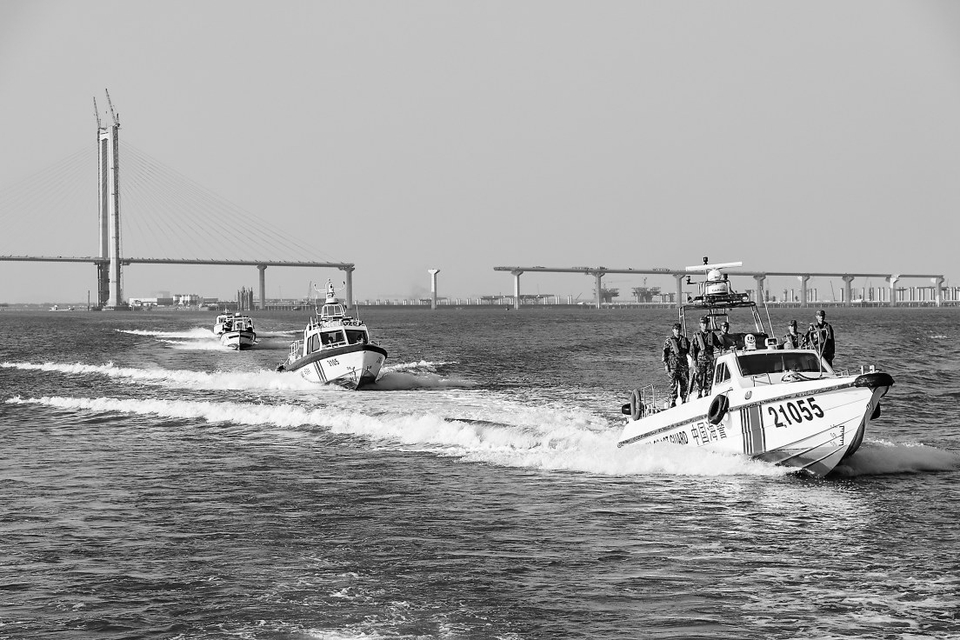 广东海警局联合海上执法相关部门对重点海域进行海上编队巡逻(2022年10月11日摄)。新华社发(江子波摄)