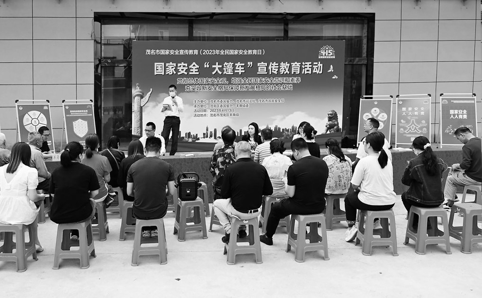 本报讯在第八个“全民国家安全教育日”来临之际,前日上午,由市委国安办、市司法局、市国家安全局联合举办的“国家安全大篷车乡村行”活动走进茂南区羊角镇,宣传总体国家安全观,普及国家安全法律法规,把国家安全知识送进乡村,送到人民群众的心上,切实提高全民国家安全意识。