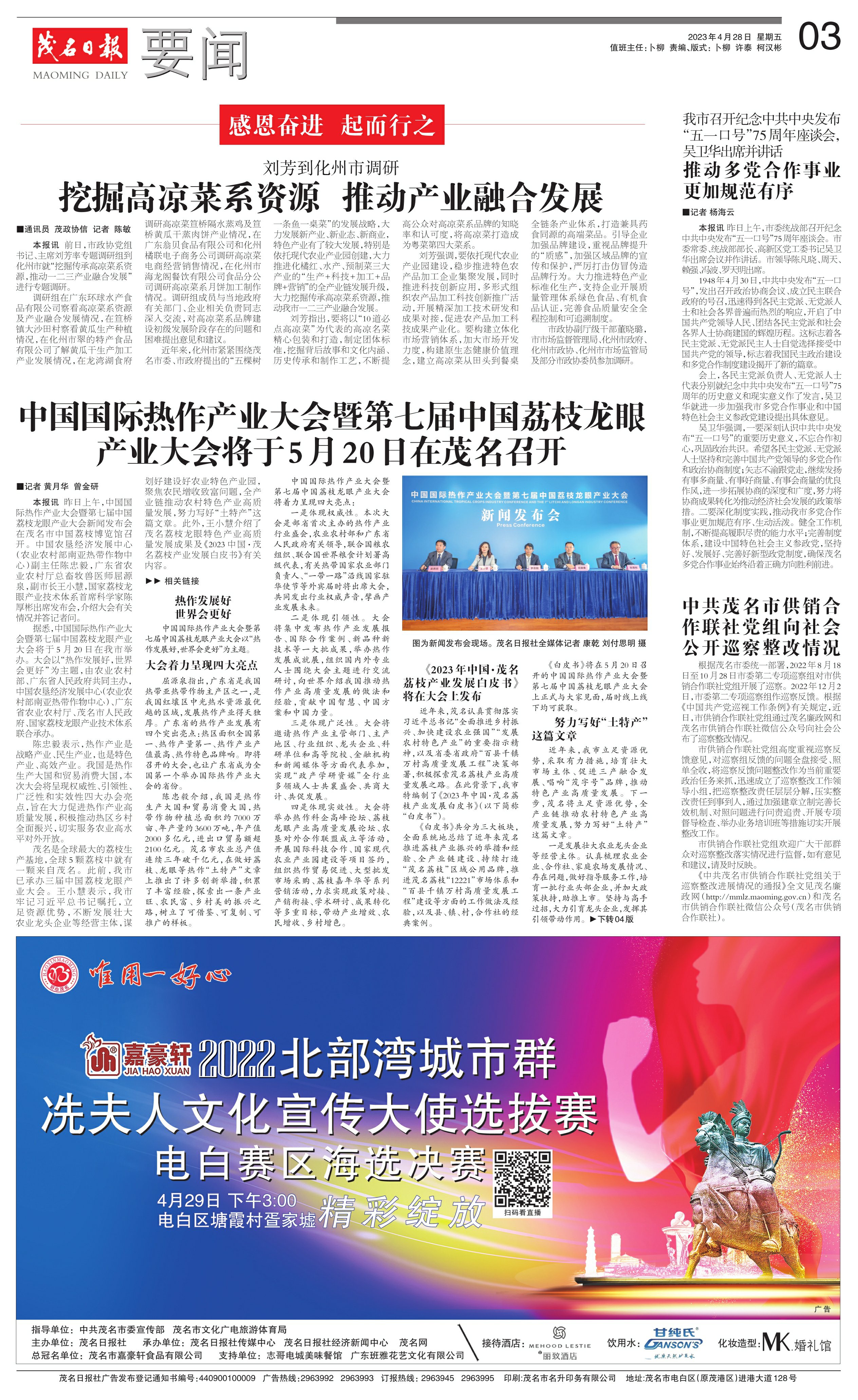 中国国际热作产业大会暨第七届中国荔枝龙眼产业大会将于5月20日在茂名召开