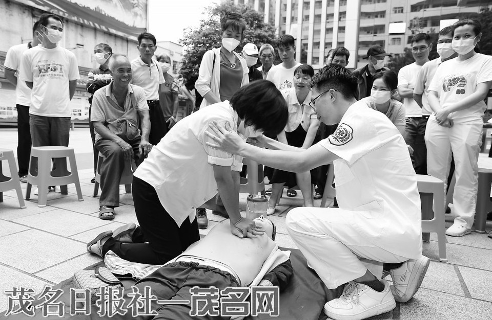 群众纷纷在现场“仿真人”教具上体验“实操”急救技能。