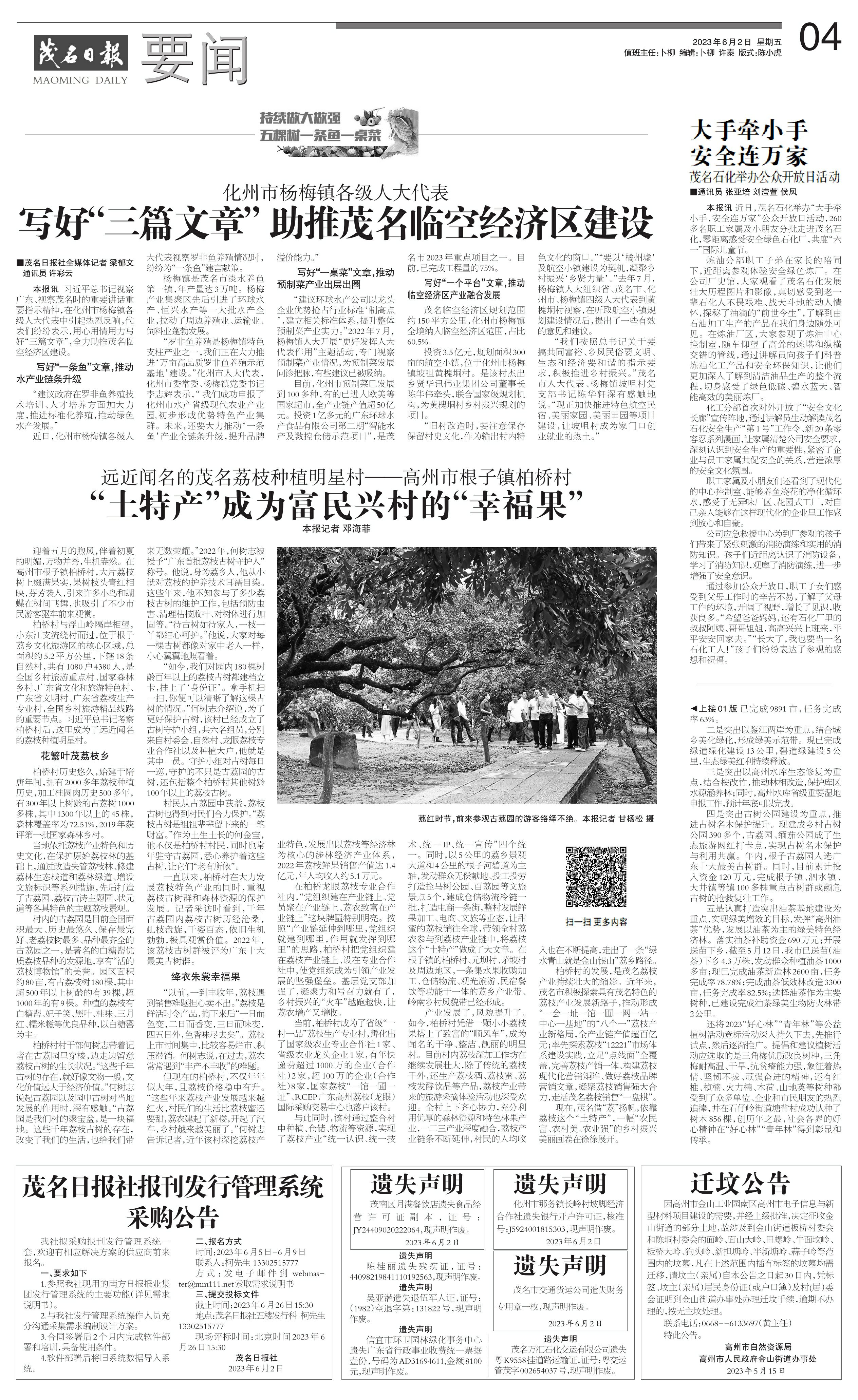 本报讯 习近平总书记视察广东、视察茂名时的重要讲话重要指示精神,在化州市杨梅镇各级人大代表中引起热烈反响,代表们纷纷表示,用心用情用力写好“三篇文章”,全力助推茂名临空经济区建设。