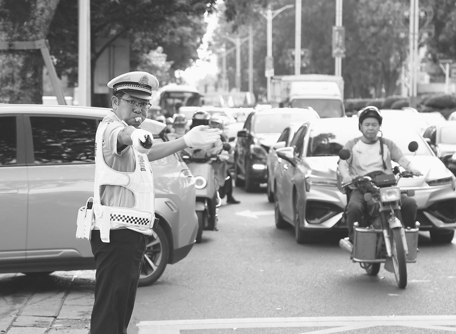 交警部门增派警力上路指挥交通。茂名日报社全媒体记者岑稳摄