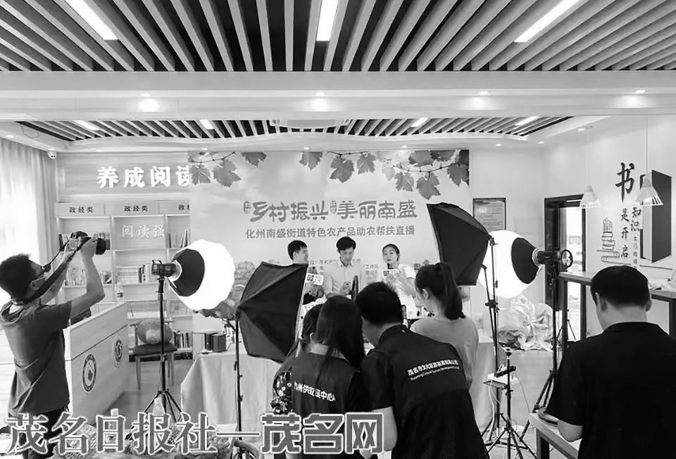 化州南盛街道特色农产品助农帮扶直播现场。