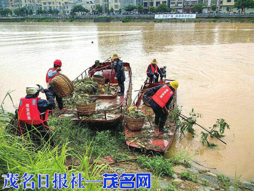 图为工作人员在鉴江河信宜市区段清理水面漂浮物。本报记者丘立贺摄
