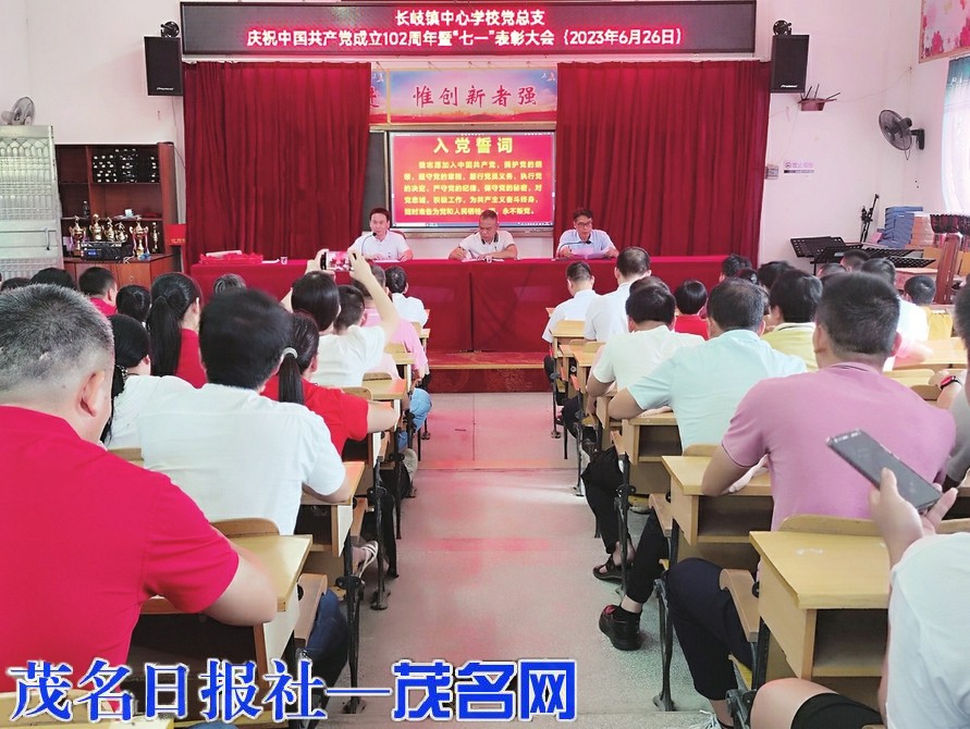 本报讯6月26日上午,化州市长岐镇中心学校党总支在东方小学举行庆祝中国共产党成立102周年主题活动。化州市长岐镇中心学校党总支书记凌志光、副书记吴亚新等出席活动。全镇党员教师(含退休党员)136人参加。