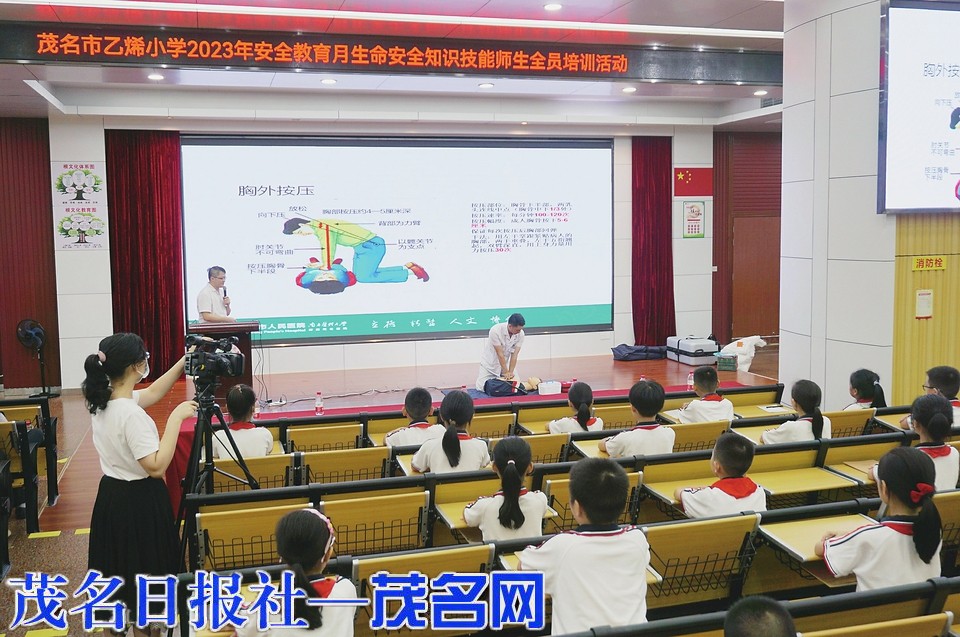 本报讯6月是第22个全国“安全生产月”,主题是“人人讲安全,个个会应急”。为加强安全宣传教育,提高师生的生命安全意识和应急救护能力,促进平安校园建设,助力营造全社会防范化解重大安全风险的浓厚氛围,日前,茂名市乙烯小学联合茂名市应急管理局、茂名市消防救援支队、茂名市人民医院,以线上线下相结合的方式在学校立志厅开展了生命安全知识技能师生全员培训活动。以上单位的专家和工作人员,以及该校全体师生共计2700多人参加了活动。