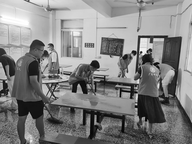 在这次活动中,社工和下乡大学生通过陪伴的方式,直观了解了老人们的身体情况、日常生活情况,倾听对方的心声,给予他们情感上的支持与关怀。在聊天的同时,还有一部分的社工和下乡大学生有序地开展清洁活动(见上图),扫地、洗地板、拖地、擦洗东西……不一会儿,满屋子飘满清香的味道。除了跟老人聊天、搞卫生,社工站还为老人们准备了鲜美可口的食物,有位老人一边吃着鸡粥,一边竖起大拇指,脸上露出笑容。