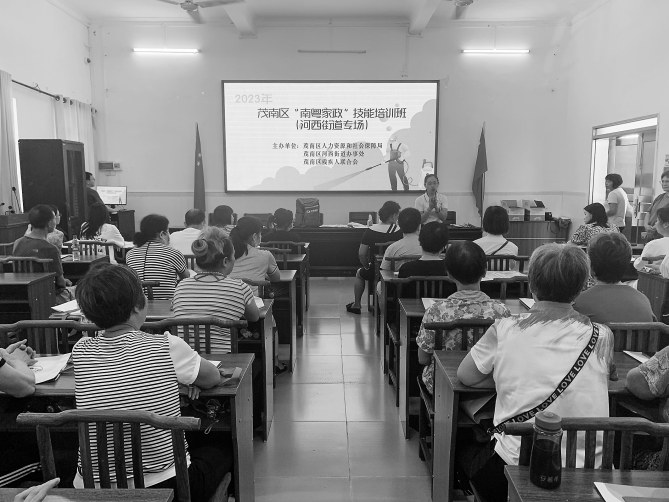 本报讯为促进辖区内居民高质量就业,提升劳动者职业技能水平,7月6日,茂南区人社局会同河西街道、区残联联合举办“南粤家政”和“农村电商”技能培训班(如下图),惠及辖区内近50名对从事家政、电商行业感兴趣的劳动者。