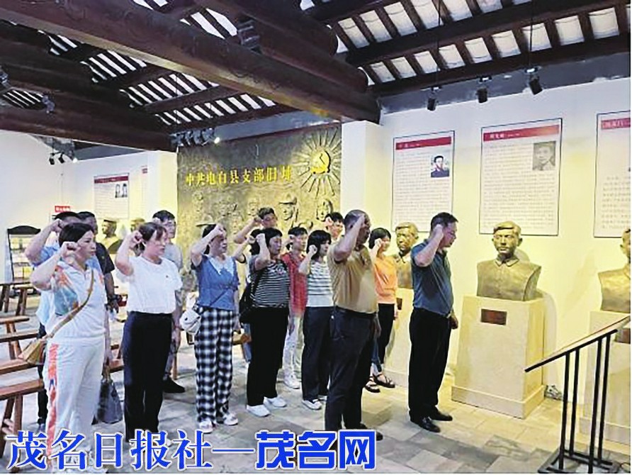 “中国巾帼英雄第一人,唯用一好心,维护国家统一......”“1927年4月国民党右派伙同电白县反动民团,制造了电白‘四·二二’反革命事件......”在讲解员绘声绘色描述下,党员们共忆峥嵘岁月,缅怀革命先烈,重温入党誓词(如右图),传承红色基因,坚定理想信念,凝聚奋进力量。