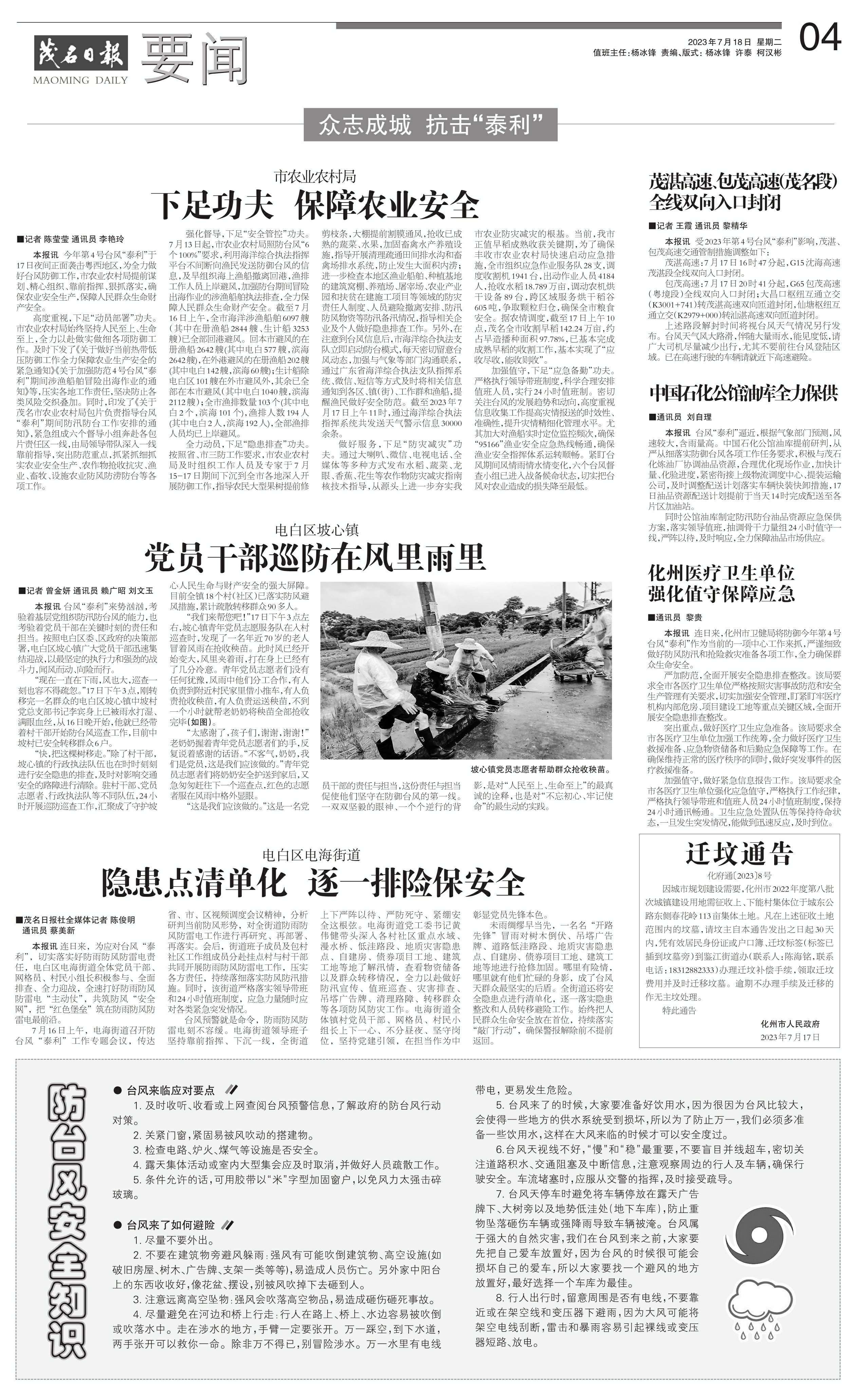 本报讯 连日来,化州市卫健局将防御今年第4号台风“泰利”作为当前的一项中心工作来抓,严谨细致做好防风防汛和抢险救灾准备各项工作,全力确保群众生命安全。