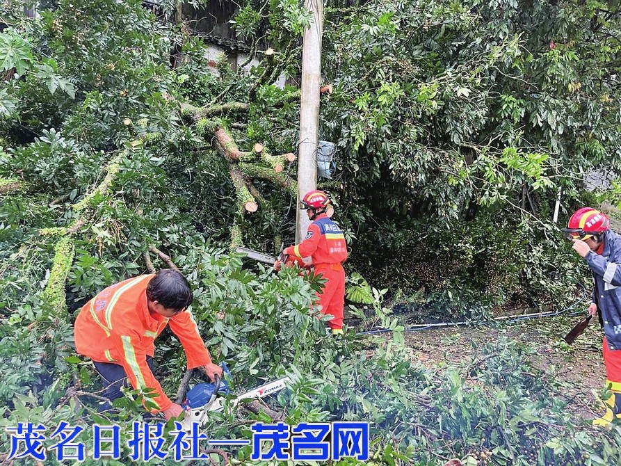 在过去24小时,厚元村降雨量最高达到345.3毫米,是全茂名市降雨最多的两个地方之一。“厚元村发现易坍塌路段,有树木吹倒......”接到相关通知,应急队伍迅速行动。一群身穿橙色的应急队伍,在阴暗的天气中显得尤为突出。“又有树木倒下了?我们也下车帮忙吧。”路过的群众,不顾微风细雨也不约而同地下车加入到队伍中,在应急队伍中,穿着便服的镇村干部、热心群众也显得“格格不入”,但大家似乎因为各自的存在更加干劲十足,只见他们各司其职,有的大刀阔斧坎树木,有的“1、2、3”异口同声齐心协力搬运树木,有的协助道班修理道路......不出一会,一条畅通无阻、焕然一新的道路又重新显现出来。