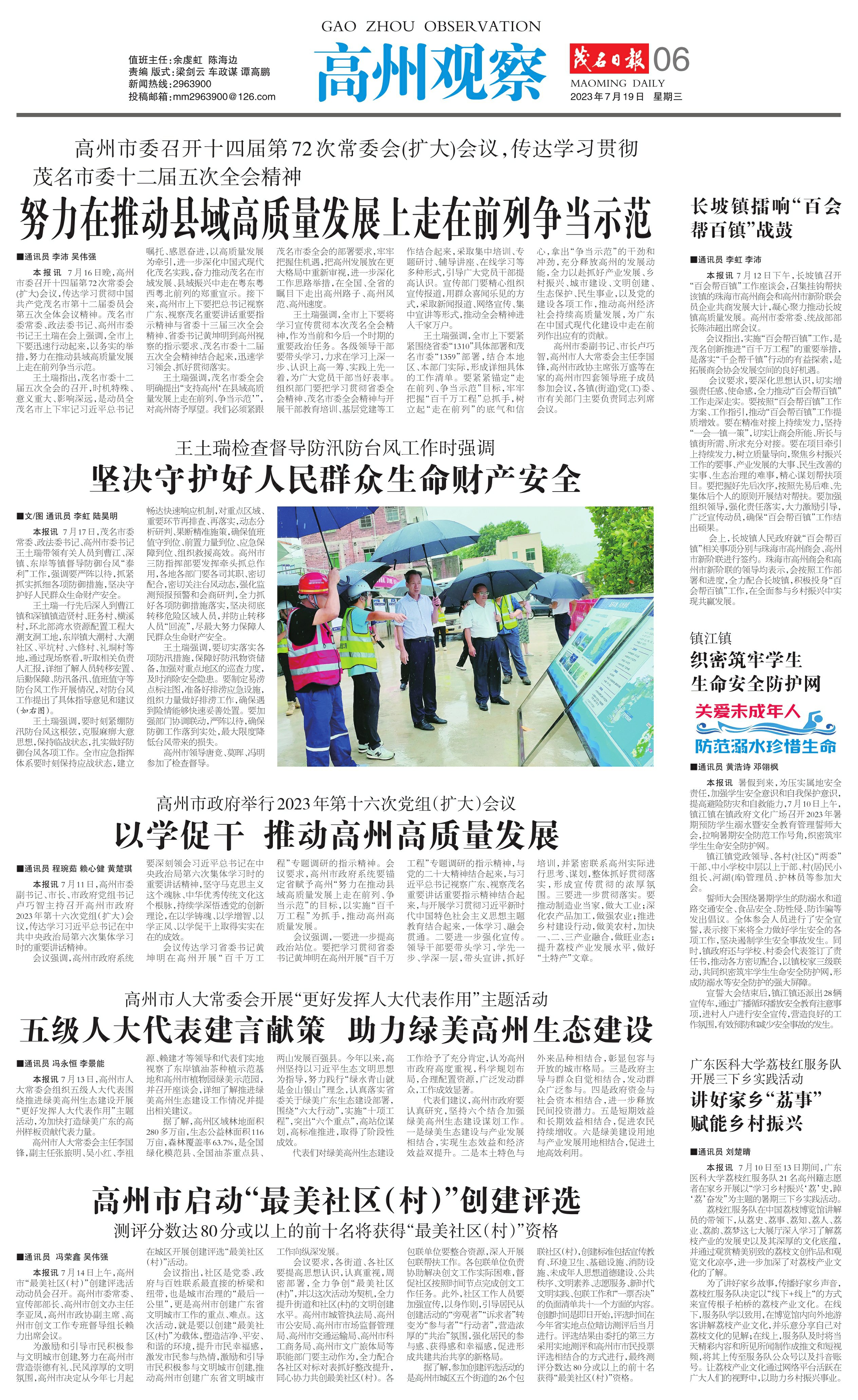 本报讯 7月10日至13日期间,广东医科大学荔枝红服务队21名高州籍志愿者在家乡开展以“学习乡村振兴‘荔’史,踔‘荔’奋发”为主题的暑期三下乡实践活动。
