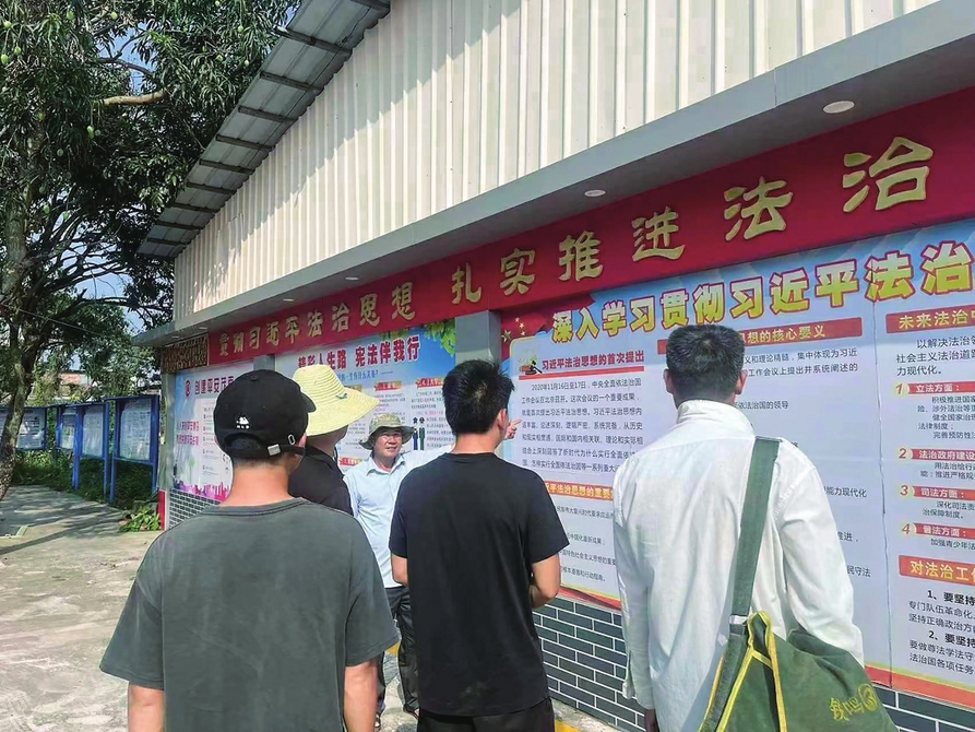 上庵村的村民在该村的法治长廊接受法治教育。本报记者谢力忠摄