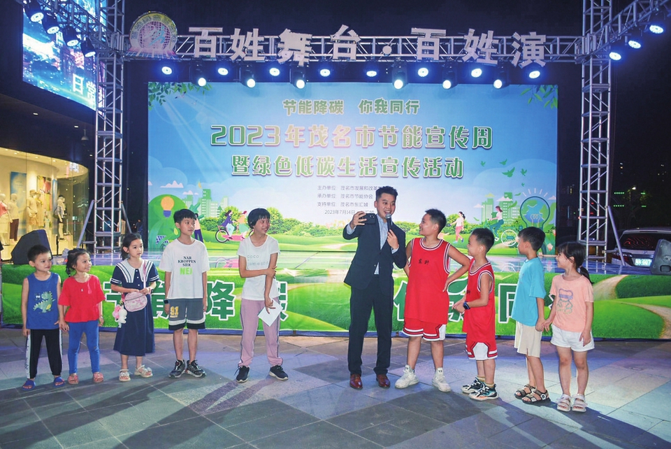 本报讯近日,由茂名市发展和改革局主办,茂名市节能协会承办的2023年茂名市节能宣传周系列活动——“节能降碳你我同行”主题宣传文艺汇演在茂名东汇城西广场举行,众多市民到场观看并积极参与现场互动(如右图),在欢乐中增长知识,增强意识。