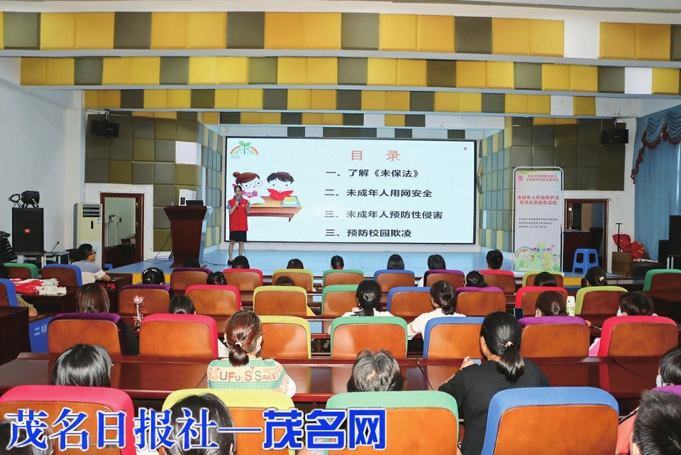 本报讯日前,由共青团茂名市电白区委员会主办的未成年人权益保护法宣讲志愿服务活动在电白区青少年活动中心举行(如右图,茂名日报社全媒体记者吴云杰摄)。来自电白区人民检察院的讲师成丽向到会的20多名学生和部分家长详细解读了《未成年人保护法》的内容,受到了与会者的欢迎。
