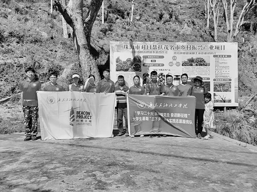 本报讯为调研信宜市平塘镇黑榄的种植及深加工概况,广东石油化工学院大学生达尔文社会实践队在指导老师及辅导员带领下来到平塘镇参加“三下乡”活动,到厚垌村、北中村、倒流村开展古榄的调研活动(见图),了解黑榄古树的品种改良以及黑榄的多元化加工等情况。