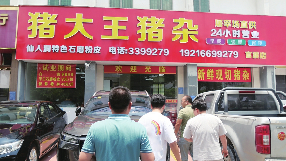 一位顾客打着饱嗝满足地告诉记者:“我刚吃完粉皮和猪杂粥,粉皮口感细腻有韧性,搭上调配好的酱油,放进口里,瞬间我就觉得‘燃爆味蕾’,味道一流;猪杂粥上来时粥水还在翻滚,粥粒饱满,猪杂翻腾,香味弥漫,有谁能够经得起如此诱惑?无论是脆嫩的猪肠、鲜美的猪心、猪舌,经师傅炮制,吃下去齿颊留香,无不令人想再来一份。”
