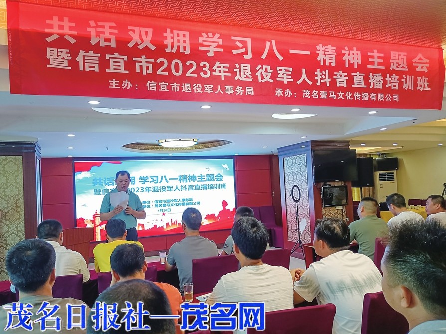 本报讯在“八一”建军节到来之际,7月26日,信宜市退役军人事务局举办“共话双拥学习八一精神主题会暨信宜市2023年退役军人抖音直播培训班”。该市50名20~40周岁的退役军人和士官参加培训。