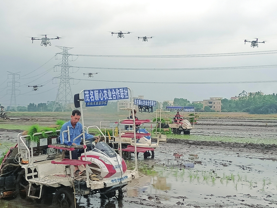 茂名顺心农业合作联社的农机正在田间作业。(资料图片)