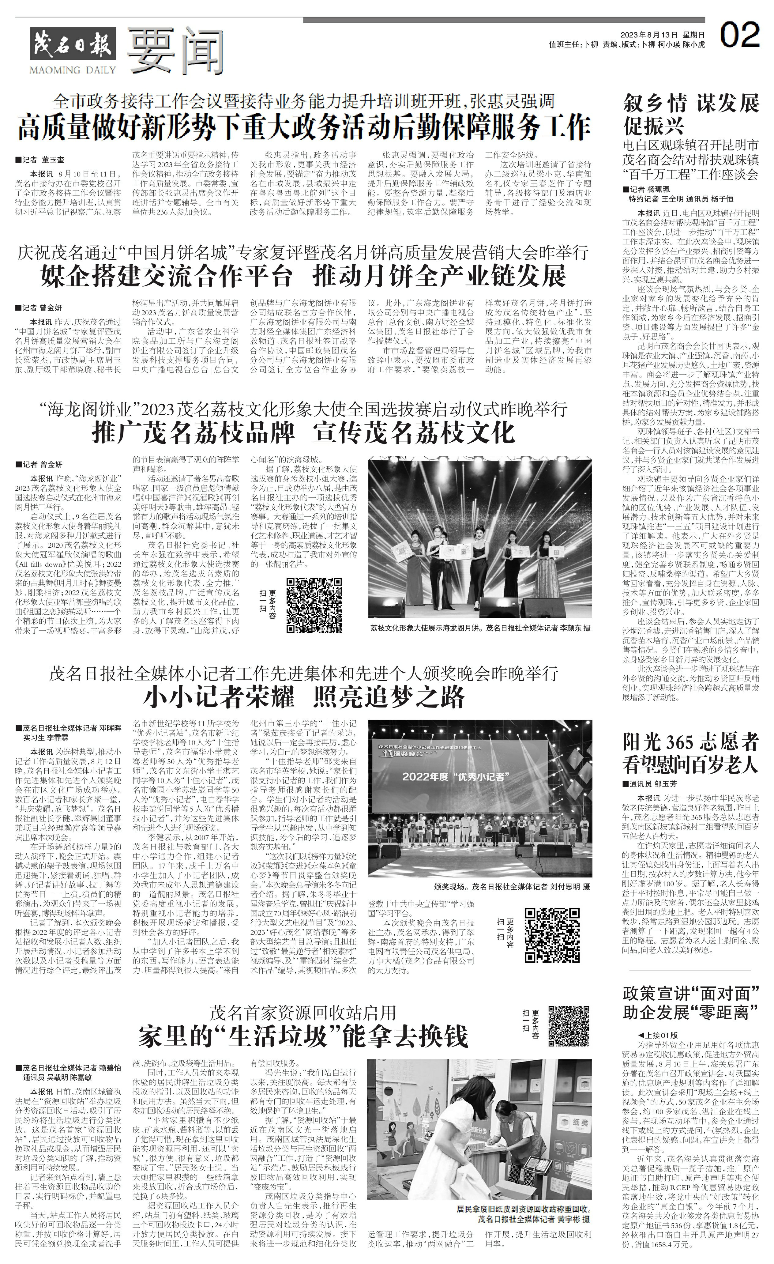 张惠灵指出,政务活动事关我市形象,更事关我市经济社会发展,要锚定“奋力推动茂名在市域发展、县域振兴中走在粤东粤西粤北前列”这个目标,高质量做好新形势下重大政务活动后勤保障服务工作。