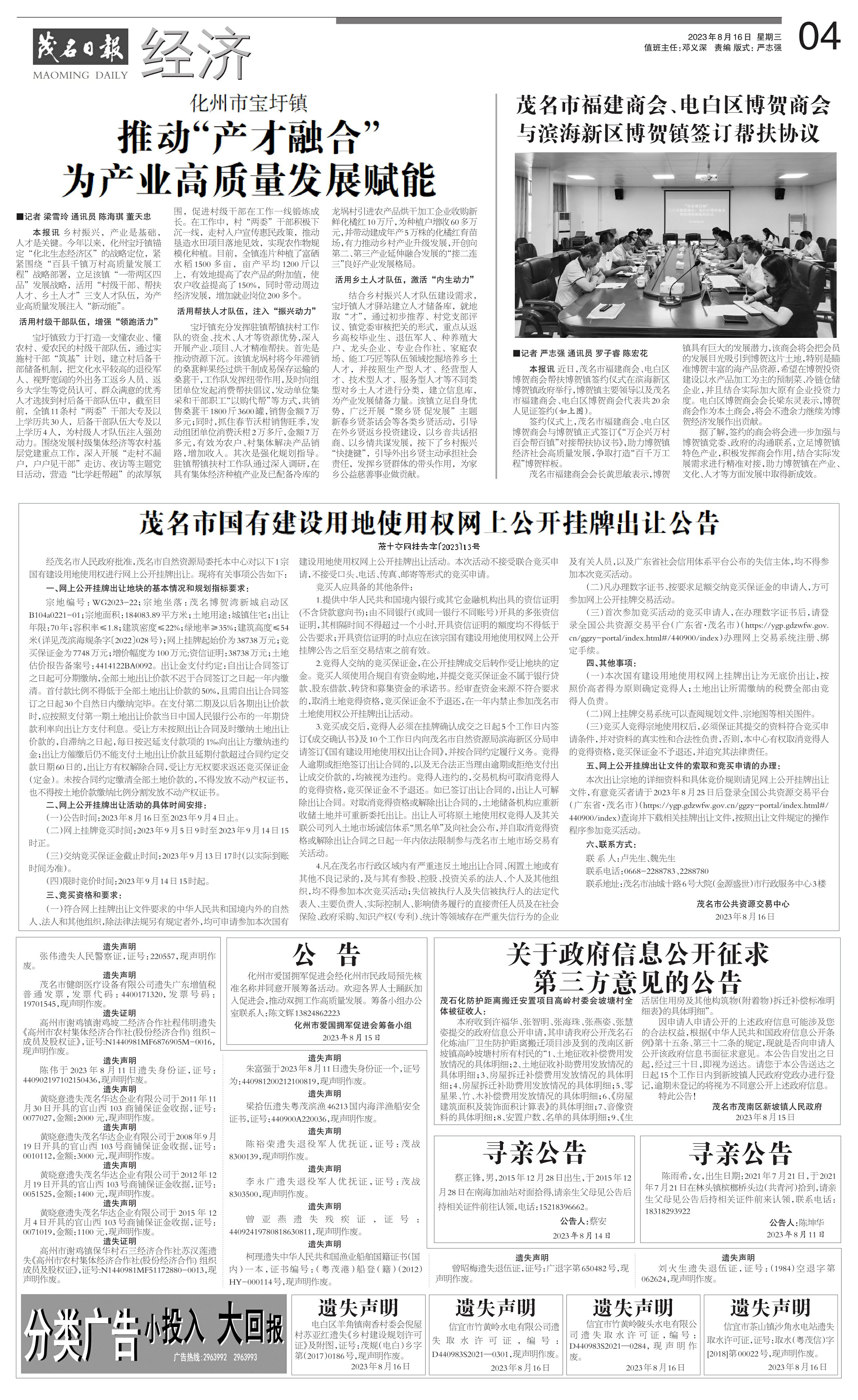 茂名市福建商会、电白区博贺商会与滨海新区博贺镇签订帮扶协议
