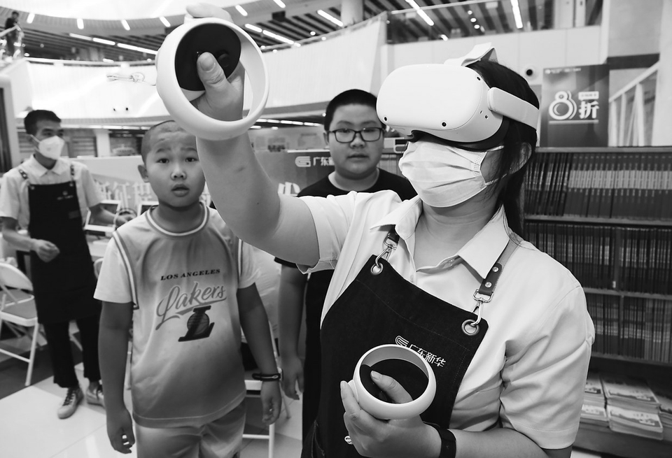 市民在展厅体验VR科技。 茂名日报社全媒体记者岑稳摄