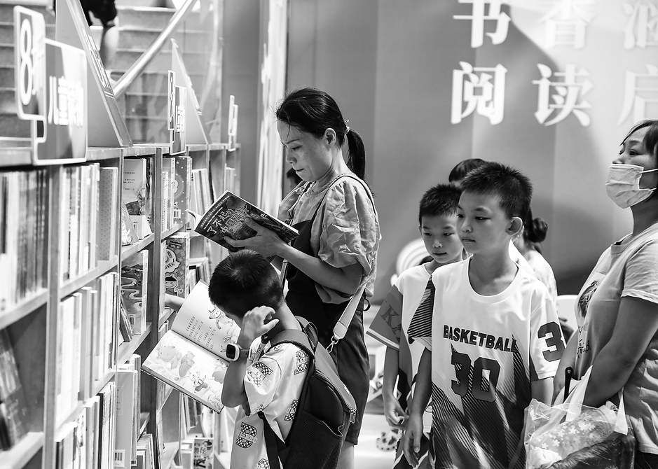 市民在书香节展厅内阅读。 茂名日报社全媒体记者岑稳摄