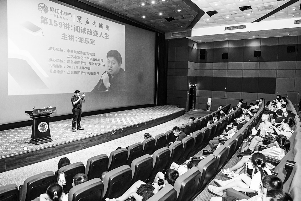 谢乐军为读者讲述《阅读改变人生》。 茂名日报社全媒体记者甘杨松摄