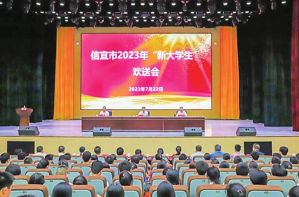 本报讯为勉励信宜学子追逐理想、回报社会、反哺家乡,近日,信宜市委、市政府在会展中心千人报告厅召开信宜市2023年“新大学生”欢送会(如图)。信宜市委书记龚庆,信宜市委副书记、市长李龙飞向现场约600名高考毕业生代表以及信宜全体准大学生致以诚挚的祝愿。约200名学生家长代表到场观礼。