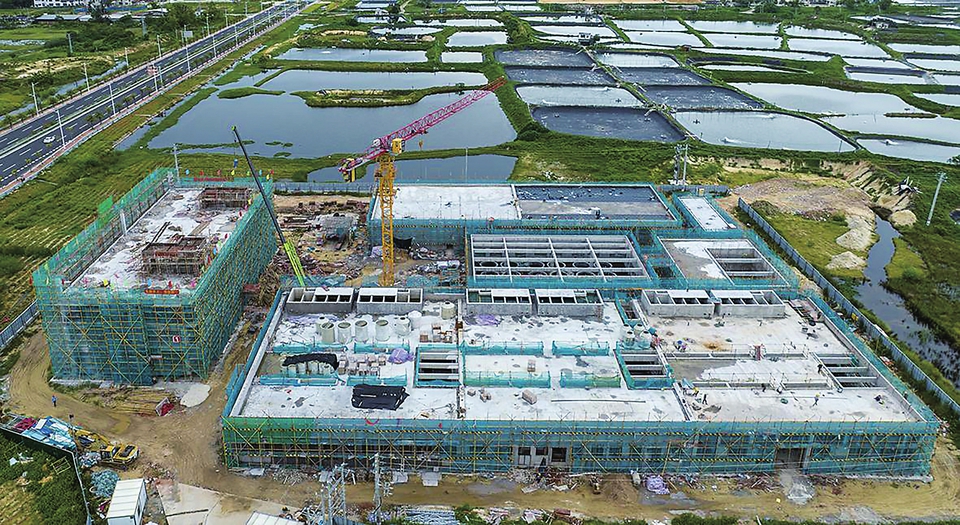 项目规划建设展销行政中心综合楼、智能化渔业养殖基地、工厂化高效养殖基地、工厂化种苗培育基地、冷链仓储物流和预制菜加工厂、尾水处理中心、设备房及附属工程。目前,随着园区主体建筑封顶,各配套设施设备有序进场,同步进行装修工程。