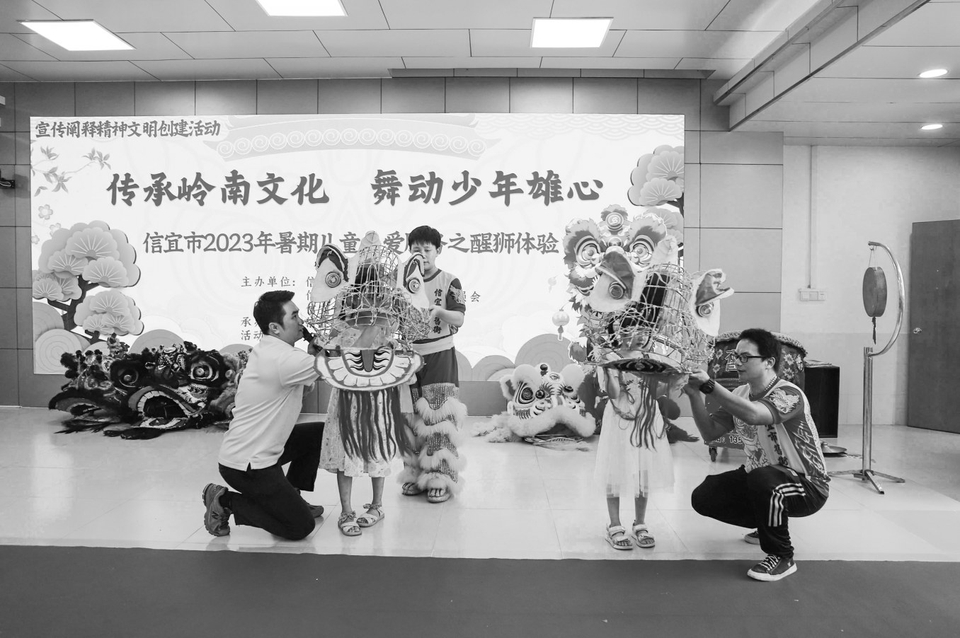 信宜市妇联联合市老干局、市关工委开展主题为“传承岭南文化 舞动少年雄心”醒狮体验活动,现场约150多名家长和孩子参加了活动。活动现场邀请醒狮传统历史课、手工制作醒狮彩灯、醒狮团现场示范、孩子上场体验舞狮等丰富的环节,让孩子学习传统文化历史,亲身领略传统文化魅力,以此推动广大儿童不断传承和弘扬中华传统文化。
