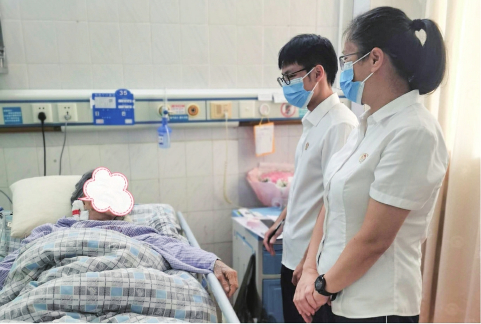 当日,茂名市南宏公证处指派两名公证员到茂名市人民医院黄女士的母亲徐婆婆病房内为其办理公证手续(见右图)。经公证员与徐婆婆交流发现,徐婆婆虽然身体不适,但头脑清楚、神志清醒,能对答流畅、表达清晰。随后,公证员向徐婆婆告知了办理继承公证及委托公证的法律意义和法律后果,确保徐婆婆清楚明白办理相关公证的权利义务。公证员在充分了解徐婆婆的意愿并得到徐婆婆同意后,对徐婆婆进行了询问并依法办理了相关公证手续。